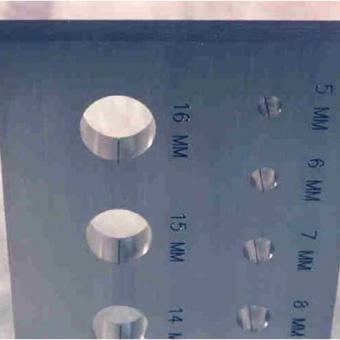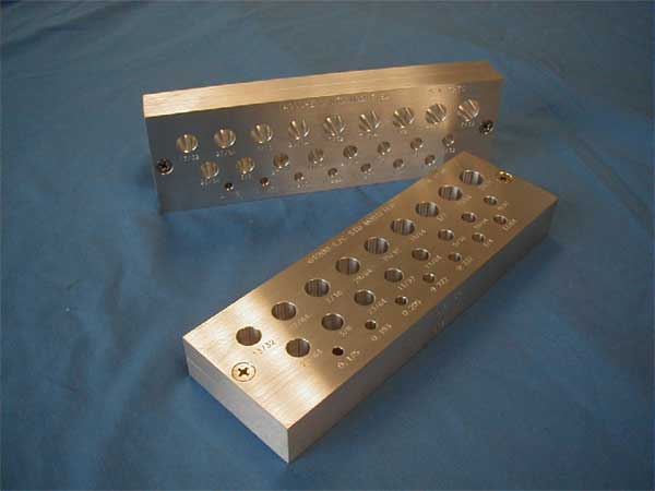 PH Tool 12-Hole Eddy Current Bolthole Standards. Various alloys and notch configurations available. These reference standards are used for Eddy Current Rotary Bolthole Inspection, and serve as a cost-effective alternative to more complex government bolthole standard designs, such as the Air Force and Navy Eddy Current Standards. Can be customized upon request. Fast turnaround. Call 267.203.1600 for current pricing or see more information in our online store.