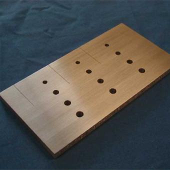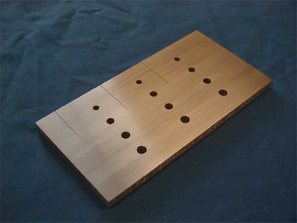 This standard contains a ..030" x .030" corner notch at each hole, and 1.000" long surface notches at depths of .005", .010", .020", and .050". Typical notch width is ..004". Email your requirements for us to quote. We do not even need a formal drawing, we'll take care of that if you haven't. Standards may be single or multi-layer fastened type. Don't settle for an "industry standard" when you can have the exact hole diameters and notch dimensions you need.